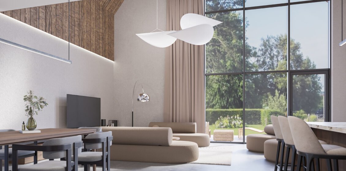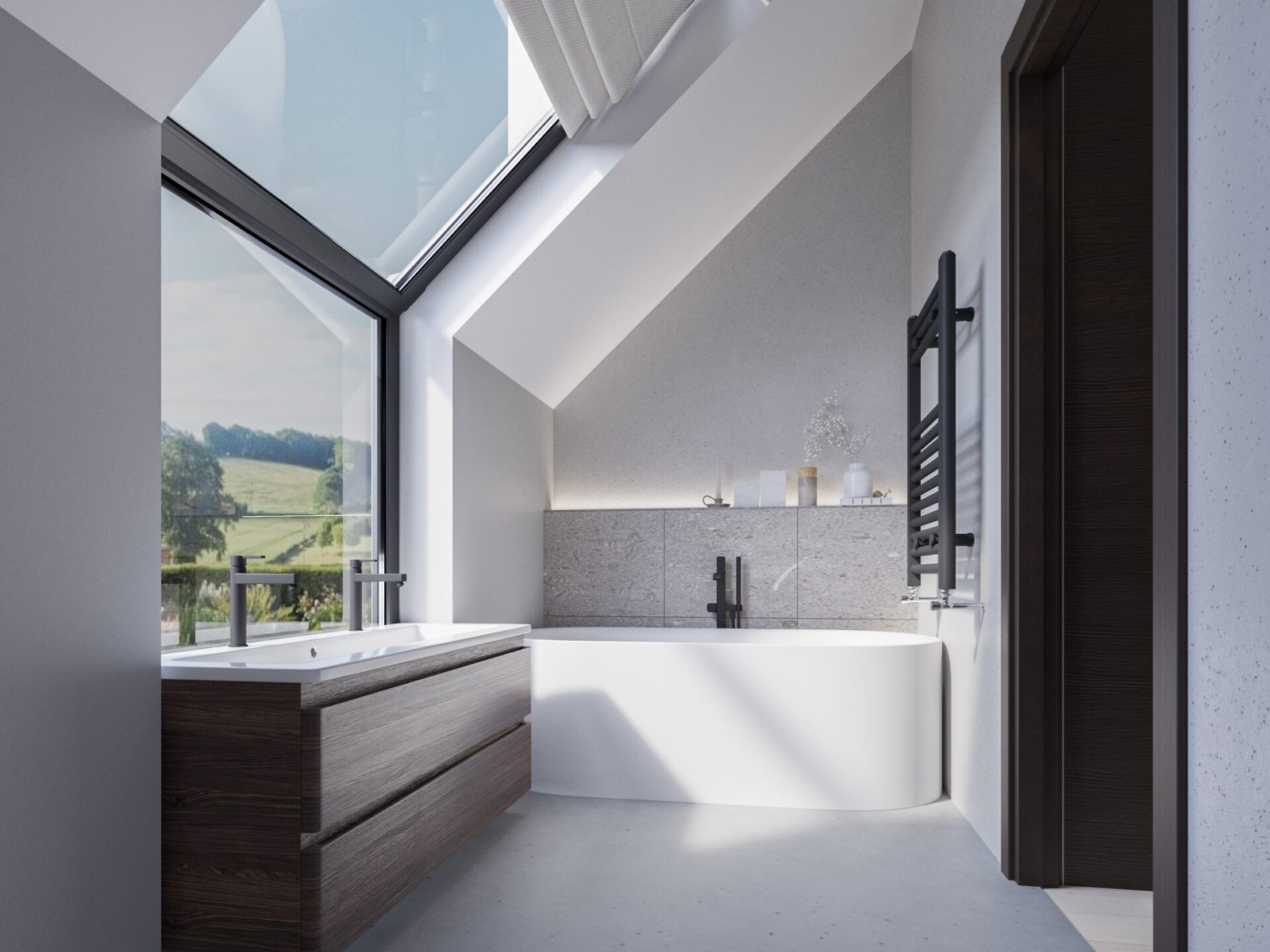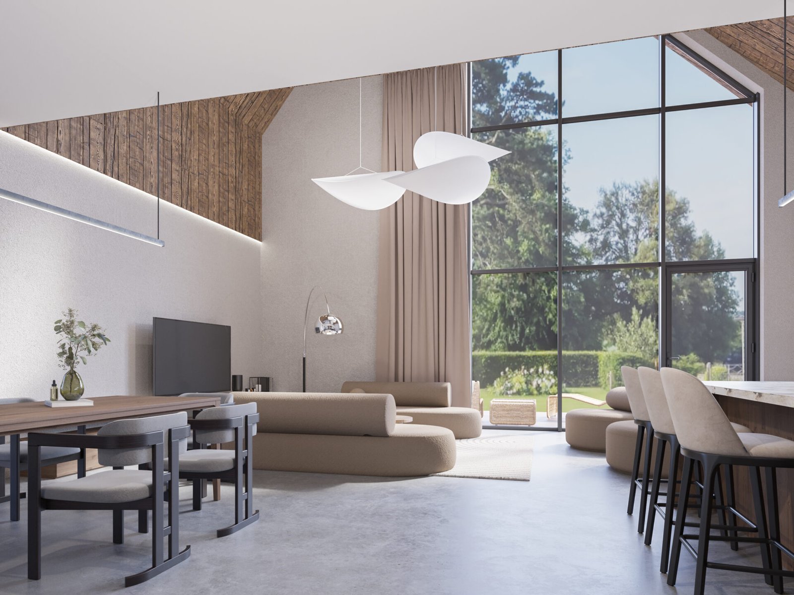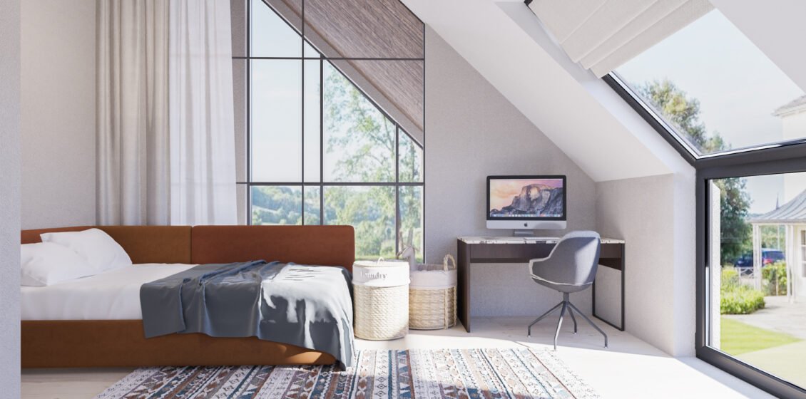 Projektinis namo plotas 164 kv. m. 5 kamb. Projekte siūlome du įsirengimo variantus. Iš kurių I aukšte suplanuota didelė su virtrininiais langais erdvi net 63 kv. m. svetainės ir virtuvės erdvė, kurios lubų aukštis iki 8 m. Darbo kambarys, drabužinė, WC, talpi katilinė. II aukšte – vienoje aukšto pusėje tėvų zona, kurioje suprojektuotas miegamasis kambarys su privačiu vonios ir drabužinės kambariu, kitoje pusėje, su tėvų kambariu nesiribojantys 2 vaikų miegamieji kambariai ir jiems skirta vonia.