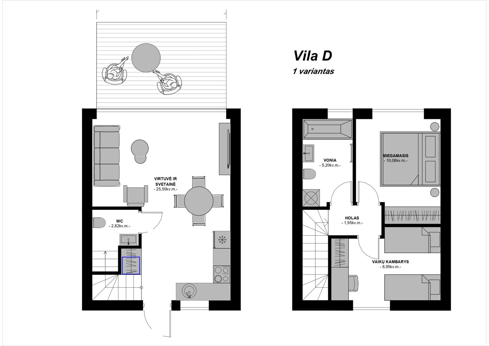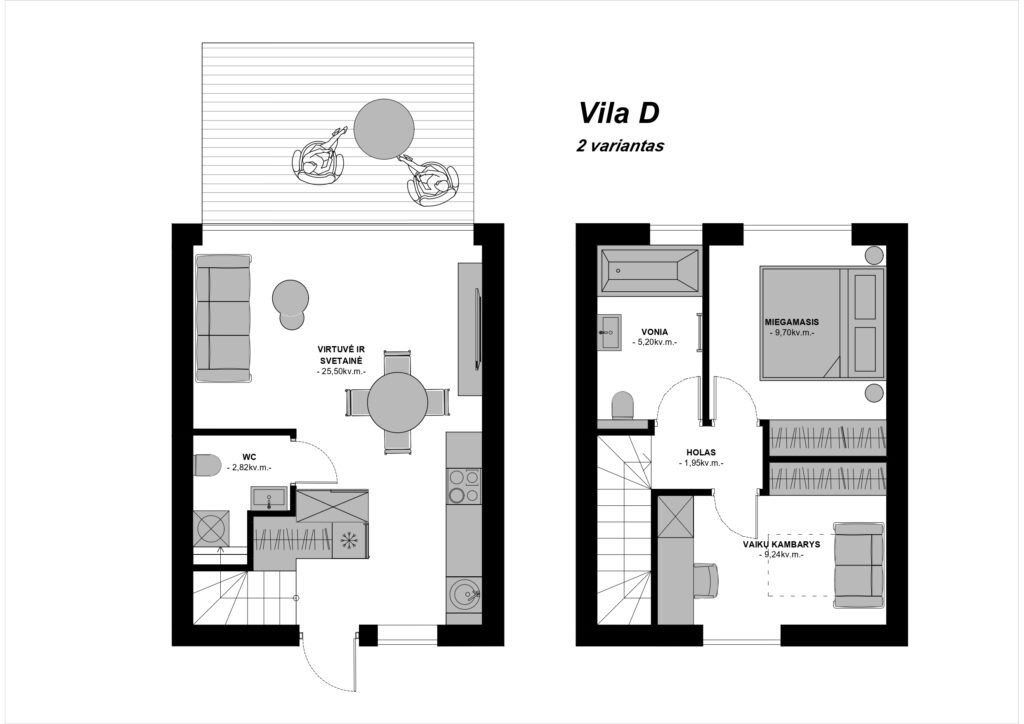 Estetika ir kokybė, architektūros darna. Vilų fasadą puošia degintos medienos ir „Classic“ skardos fasado apdaila, sumontuoti mediniai stumdomų sistemų langai, įrengiamos termo medienos terasos. Būstai apsupti žalumos, o per langus atsiveria vaizdas į Buivydiškių tvenkinį, ištisus metus žaliuojančias pušis.