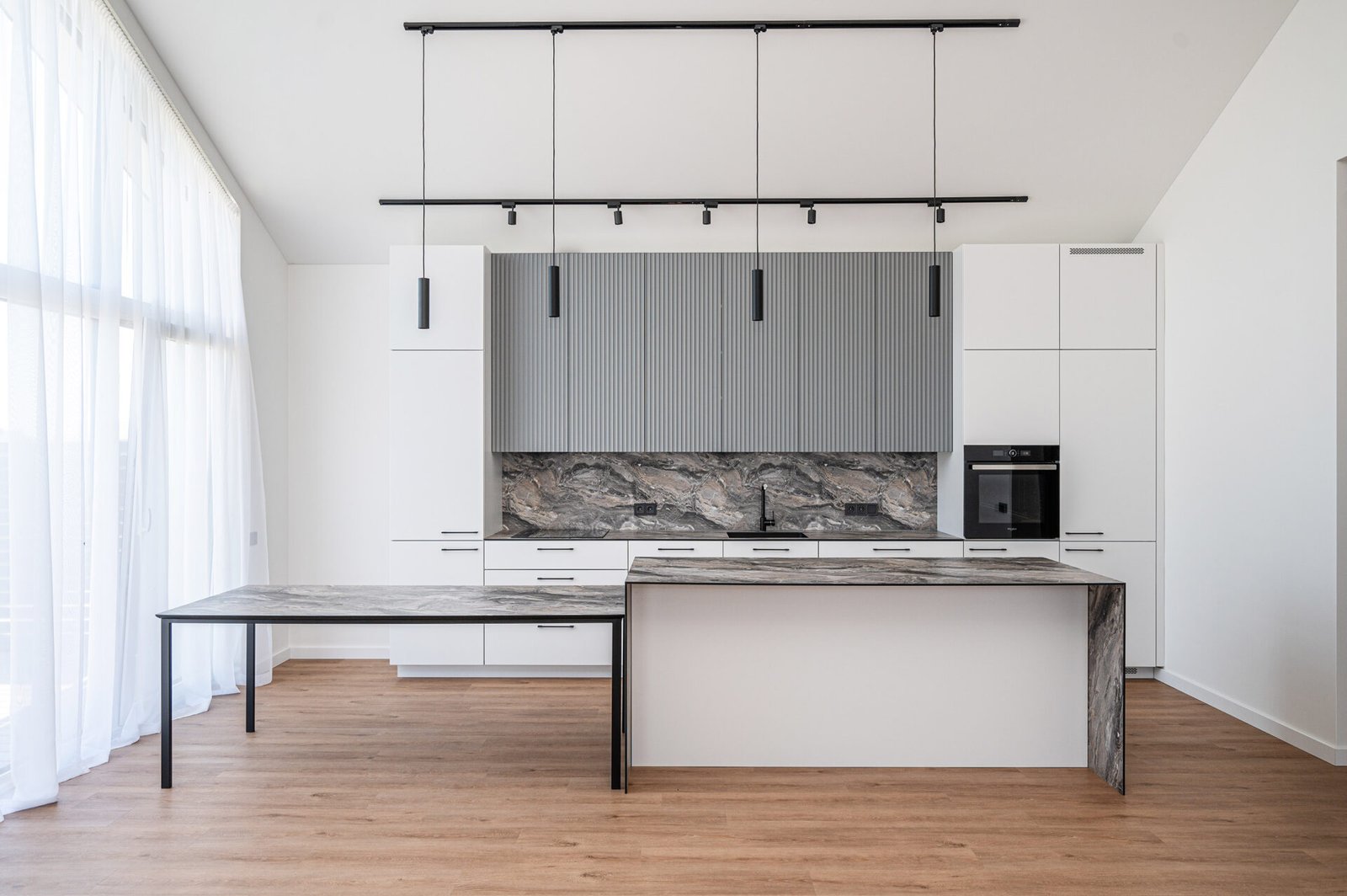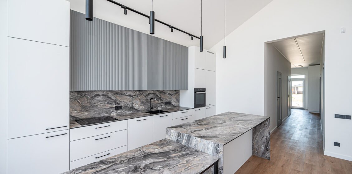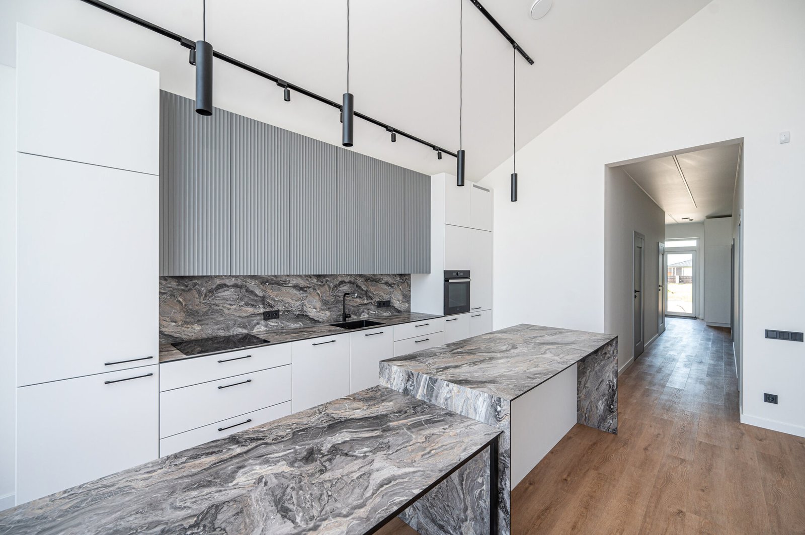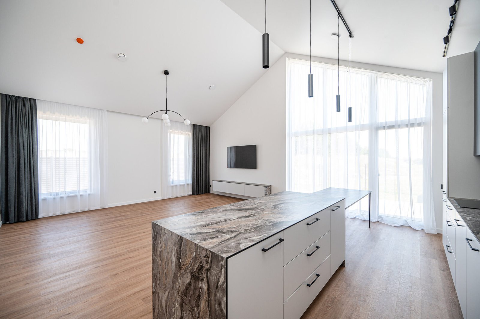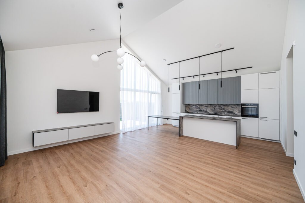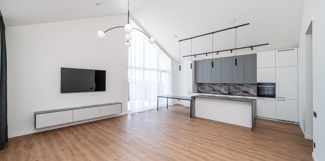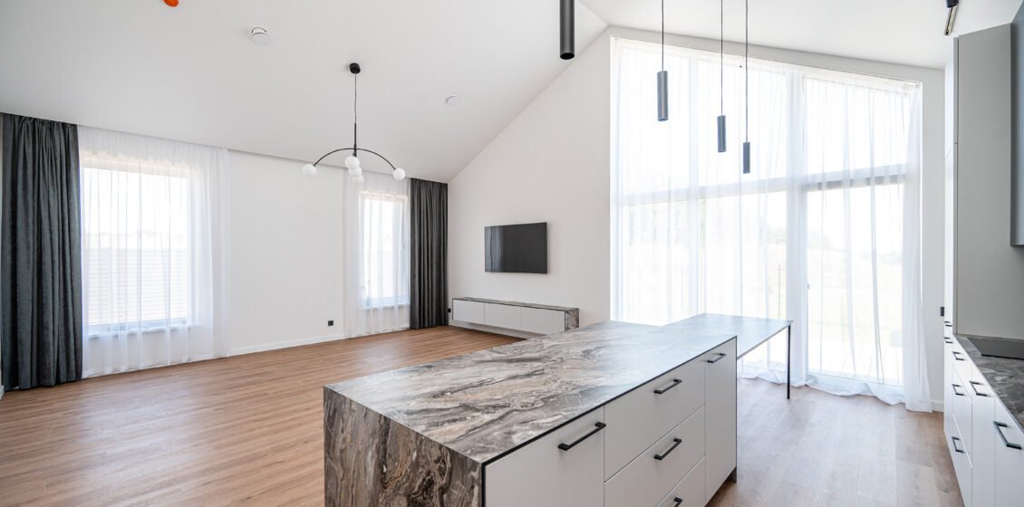 Kiekviename name suprojektuotos aukštos lubos svetainės ir virtuvės zonoje sukurs erdvės pojūtį.