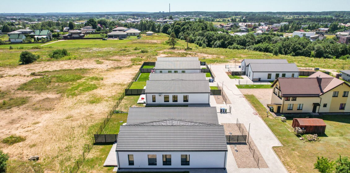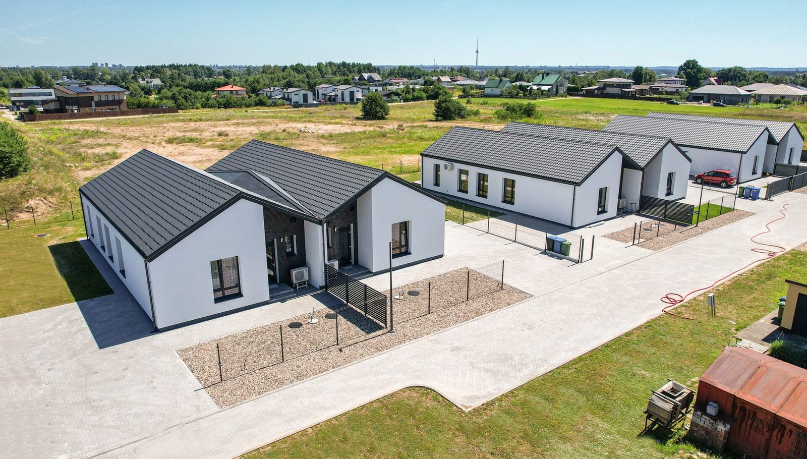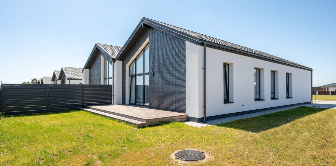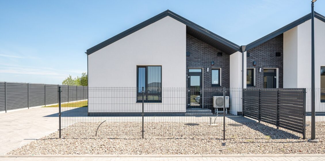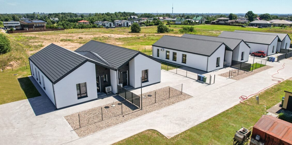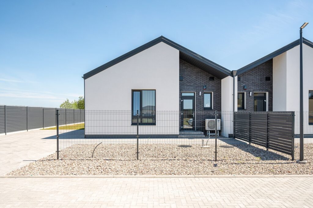 odernūs ir šiuolaikiški vieno aukšto 4 kambarių dvibučiai namai, su erdviais 5 arų sklypais