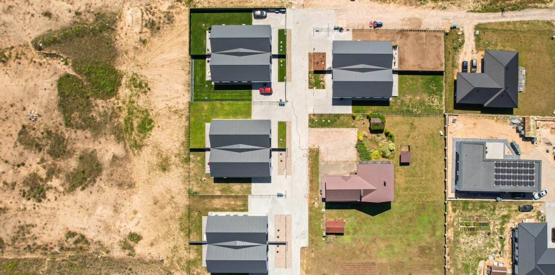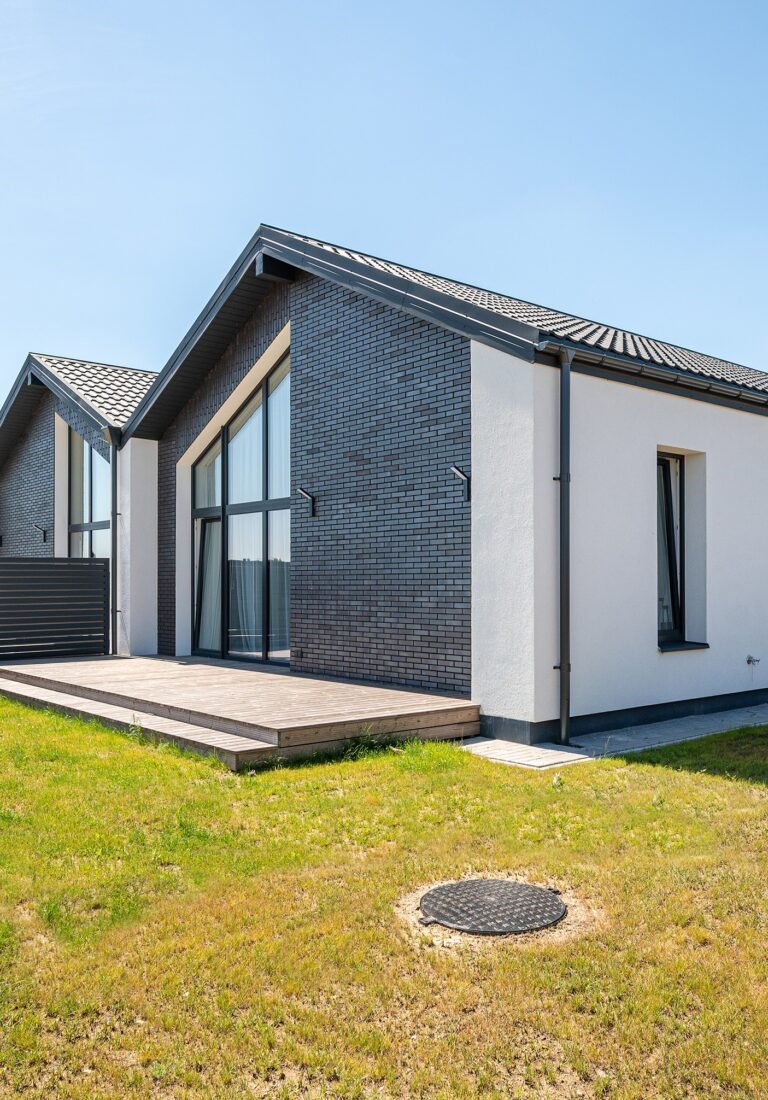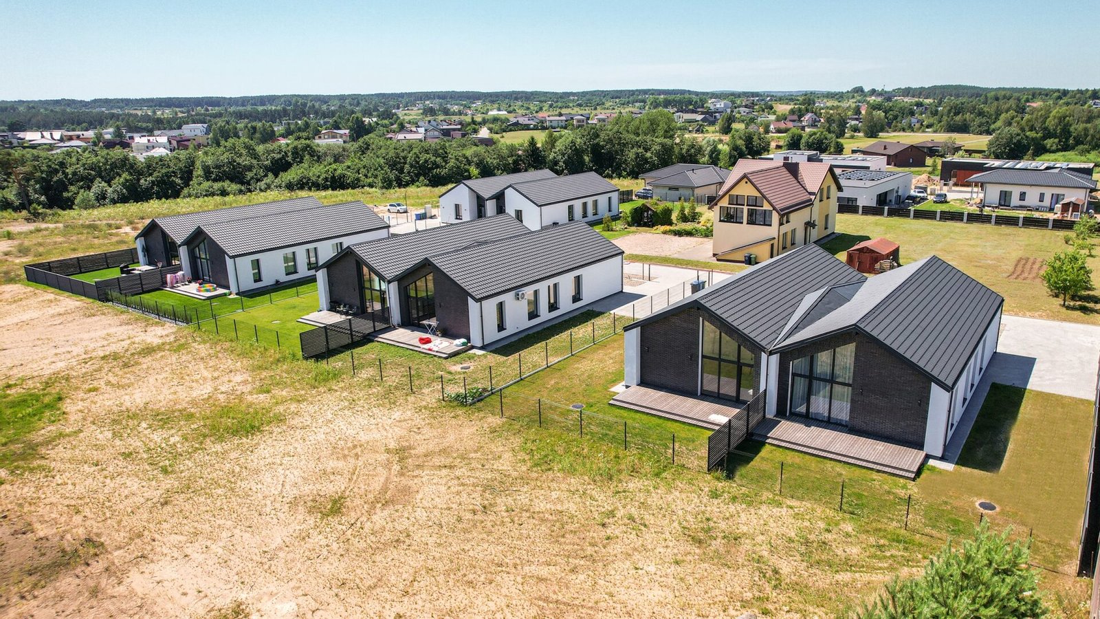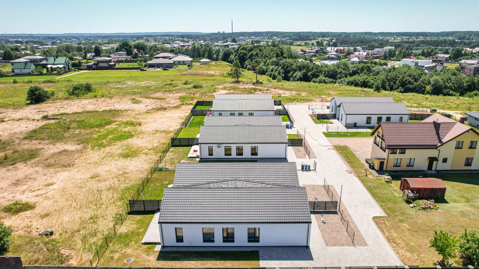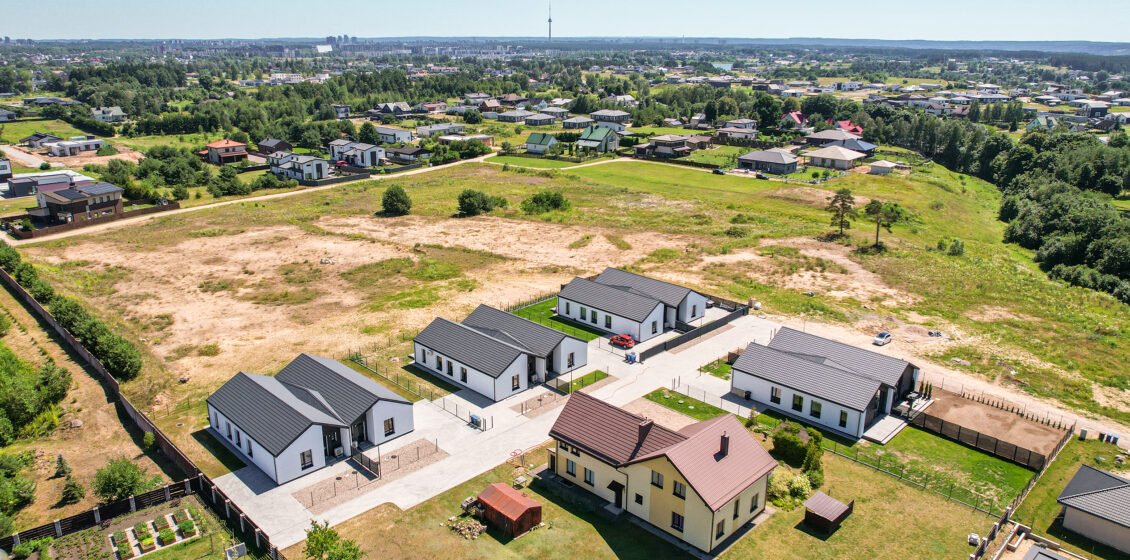 odernūs ir šiuolaikiški vieno aukšto 4 kambarių dvibučiai namai, su erdviais 5 arų sklypais