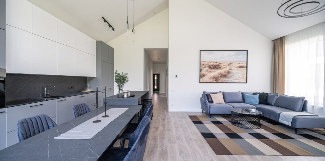 Įsikurkite šiuolaikiškai ir stilingai įrengtuose namuose, kurie pilnai įrengti, įrengta grindinio šildymo sistema, būstai parduodami su baldais ir buitine technika. Namams priklauso aptverti ir pilnai sutvarkyti 6 a erdvus žemės sklypai, medinės lauko terasos.