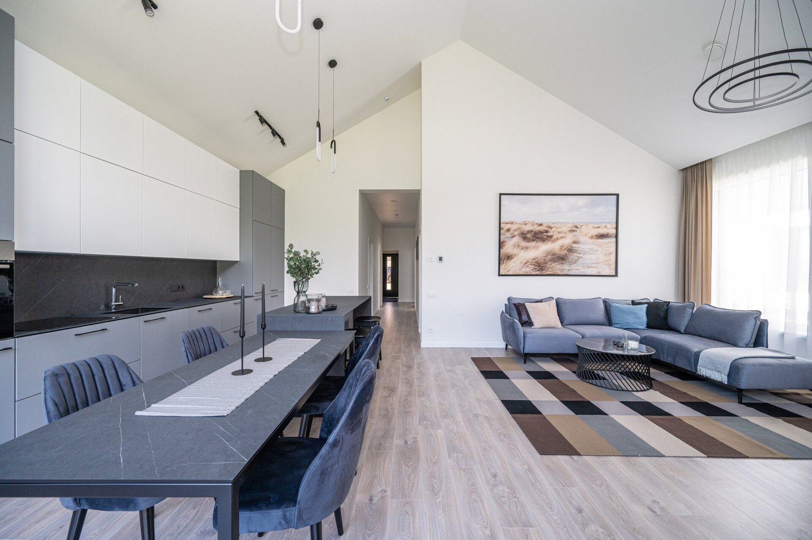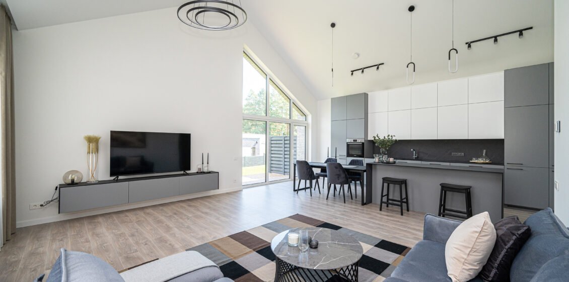 Įsikurkite šiuolaikiškai ir stilingai įrengtuose namuose, kurie pilnai įrengti, įrengta grindinio šildymo sistema, būstas parduodamas su baldais ir buitine technika.