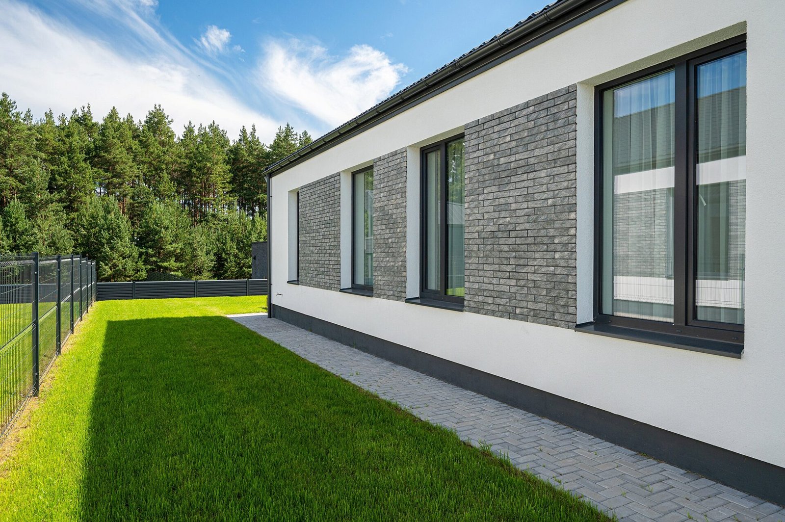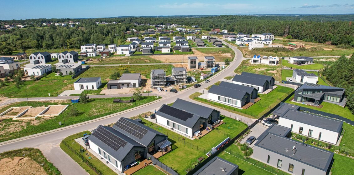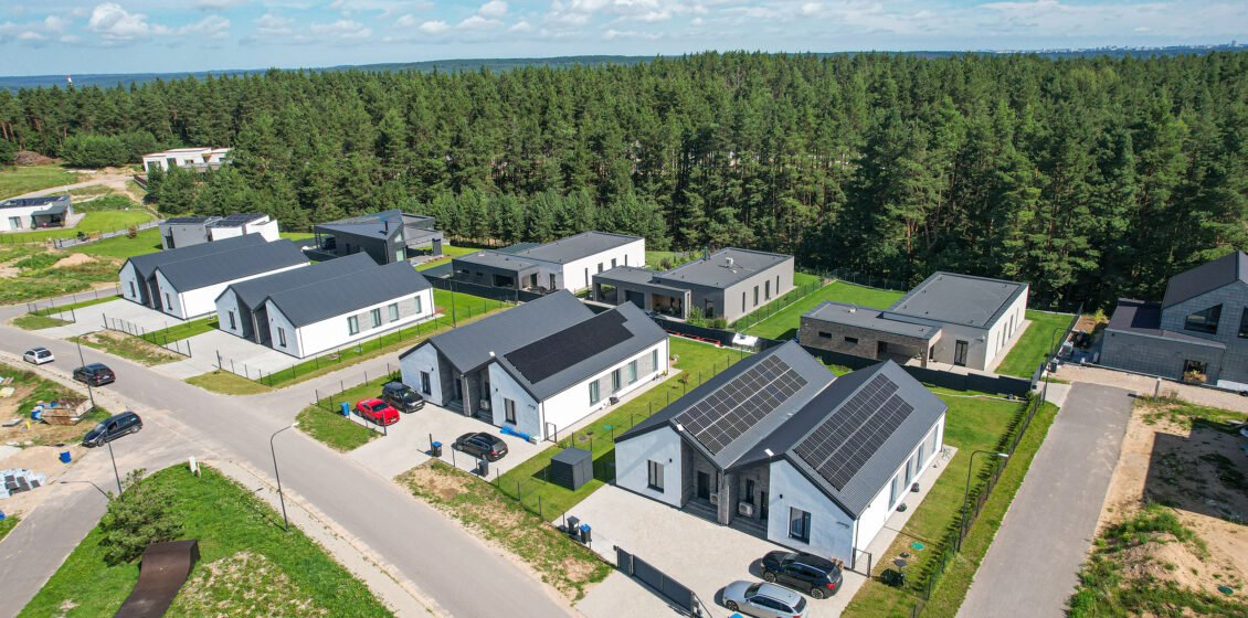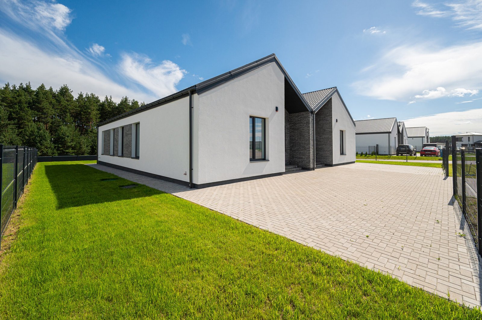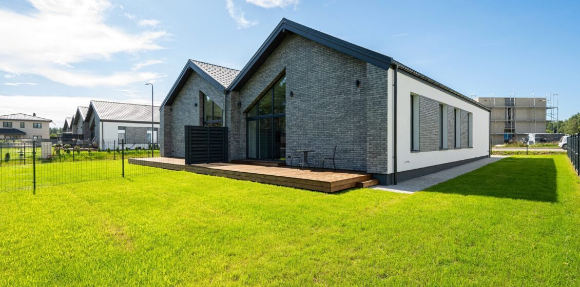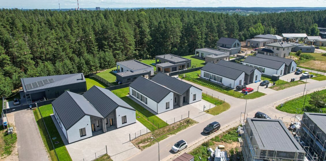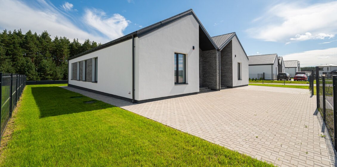 Grendavės namai projekte viso pastatyti 4 vieno aukšto dvibučiai namai su pilna apdaila.