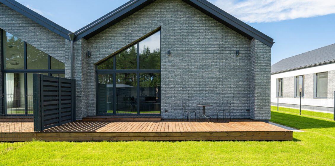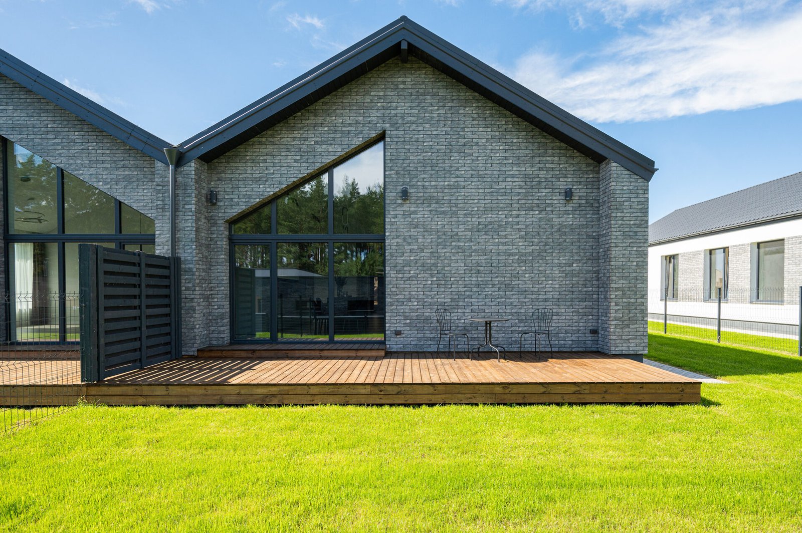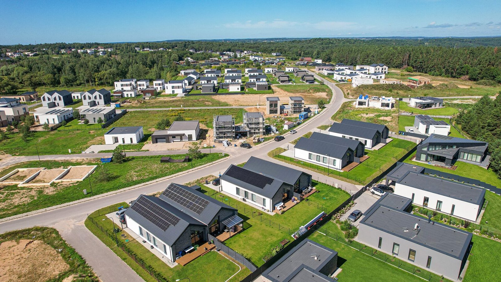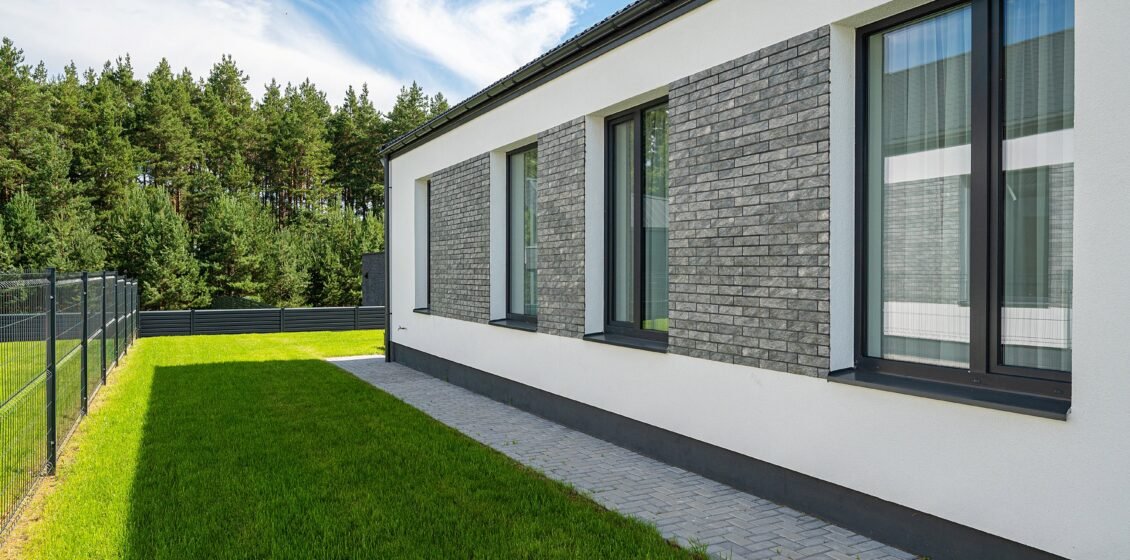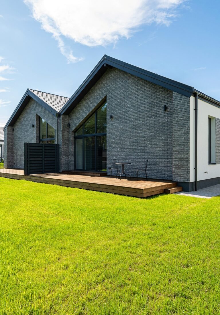 Grendavės namai projekte viso pastatyti 4 vieno aukšto dvibučiai namai su pilna apdaila.