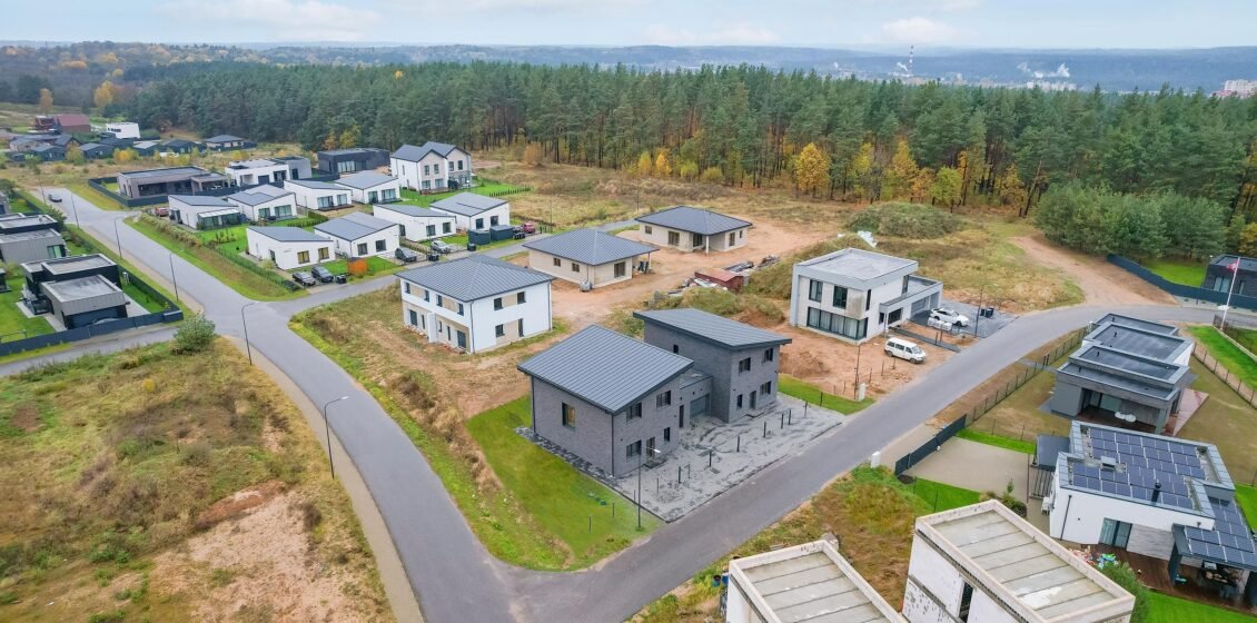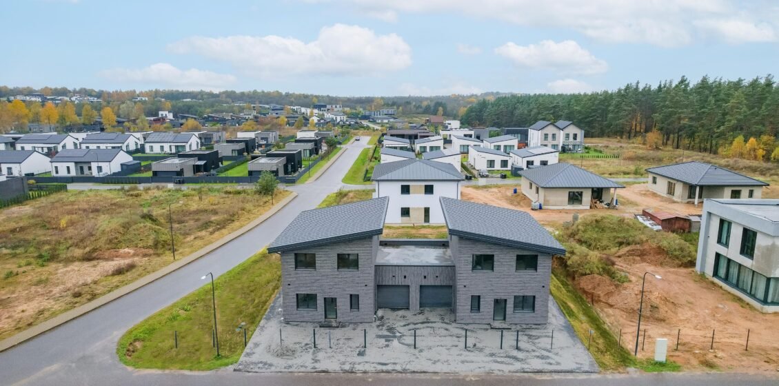Dviejų aukštų, 147 kv. m dvibučiai namai naujos statybos gyvenvietėje, supamoje miško