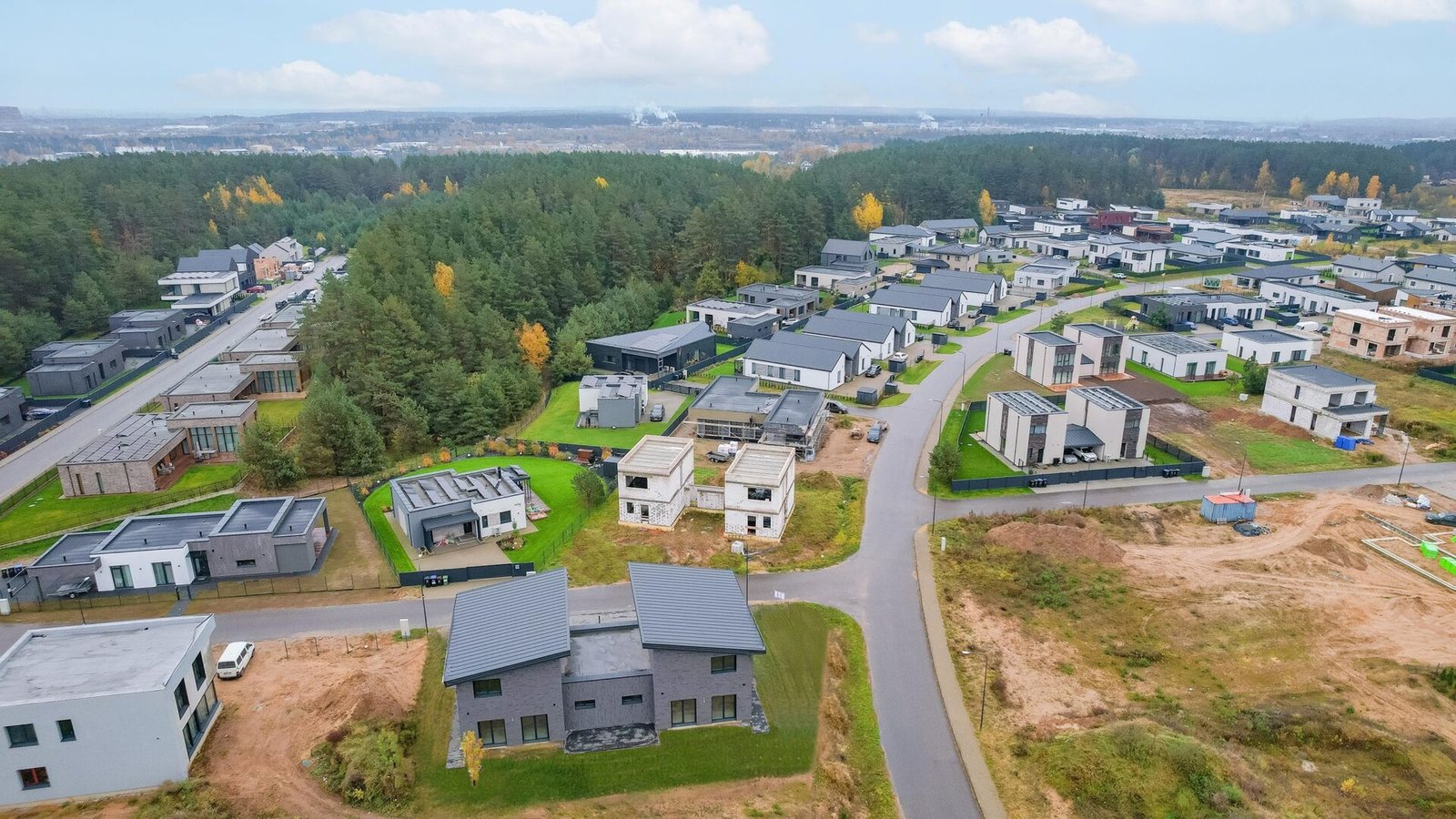 Ypatingai jaukiame, naujos statybos kvartale, kurį supa miškas, parduodami dviejų aukštų, 147 kv. m dvibučiai namai, sublokuoti tik per garažus – todėl išsaugomas privatumas ir nuosavo namo pojūtis.