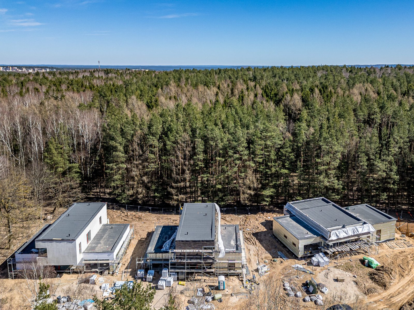 Dideli stikliniai fasadai atveria horizontus į mišką. Nedidelė ir išskirtinė kaimynystė sukuria privatumo oazę, kurioje ramybė ir individualumas – pagrindinės vertybės. Kiekviena namo detalė sukurta taip, kad derėtų su natūralia aplinka, o unikalios architektūros sprendimai suteikia šiuolaikiško komforto.