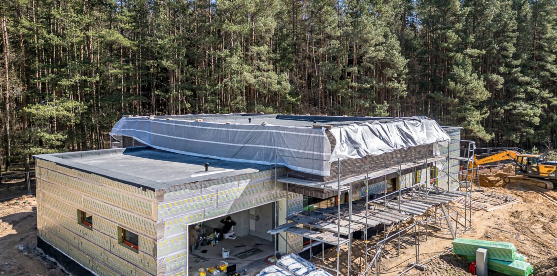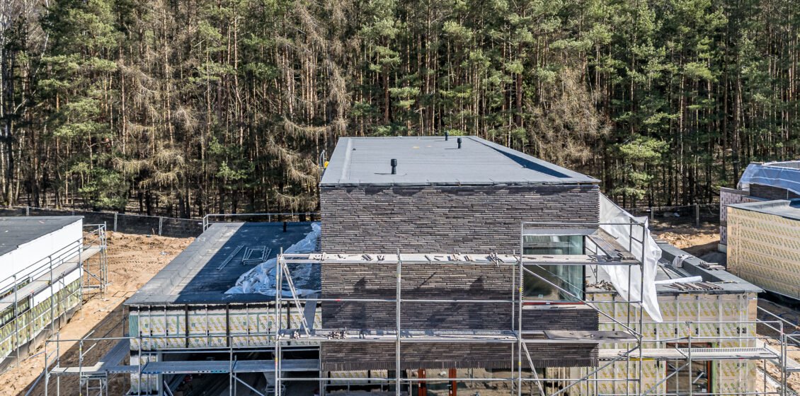 - Prabangūs fasadai iš HPL plokščių bei pjaustytų klinkerio plytų.