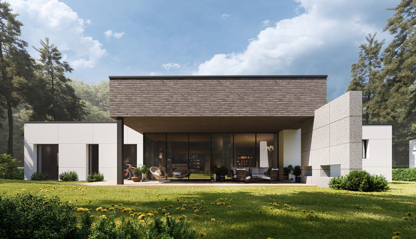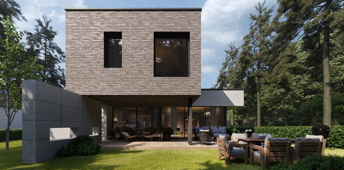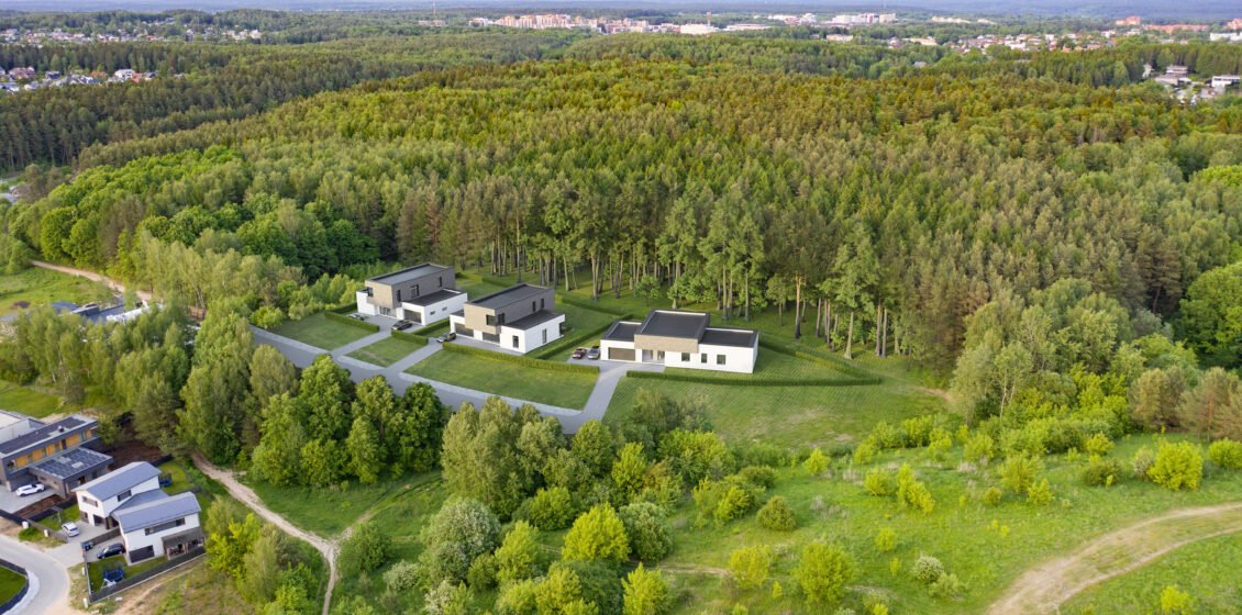 Modernios architektūros, elegantiški ir stilingi gyvenamieji namai prie miško suteikia unikalią galimybę kasdien mėgautis natūraliais, raminančiais vaizdais tiesiai pro langus.